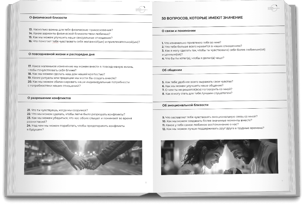 Заполните форму ниже, чтобы получить практику для вашей пары и список из 50 вопросов, которые рекомендуют коучи Академии Экспоненциального Коучинга, чтобы развивать и укреплять ваши самые важные отношения — отношения с партнерами и любимыми людьми.