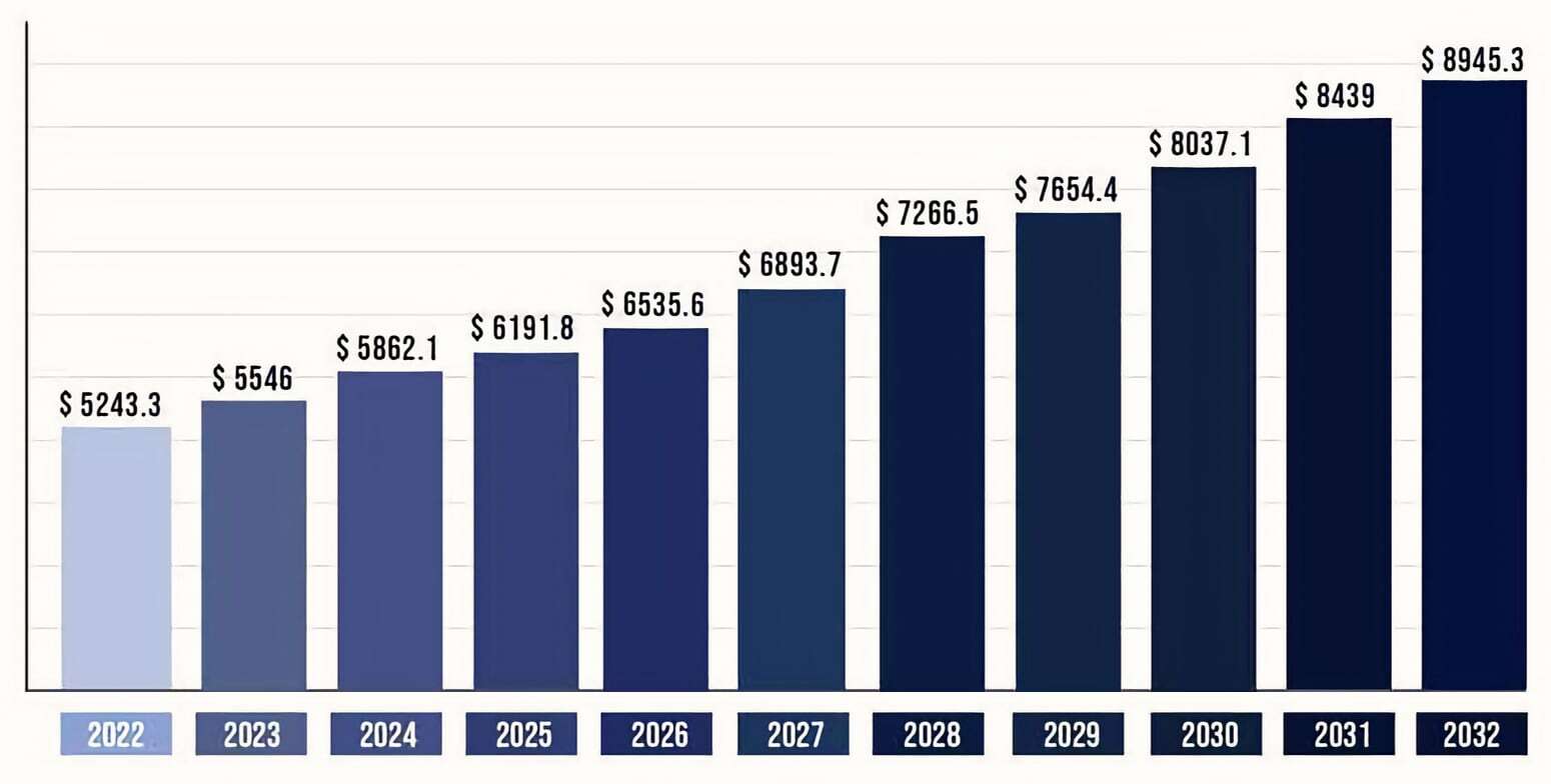 В 2022 году объем мирового рынка health&wellness оценивался в 5,243 млрд долл. и, как ожидается, к 2032 году достигнет более 8,945 млрд долл.